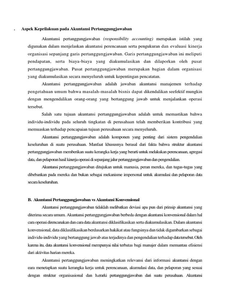 Pertanyaan tentang aspek keperilakuan pada akuntansi pertanggungjawaban. Check spelling or type a new query. We did not find results for: Maybe you would like to learn more about one of these?